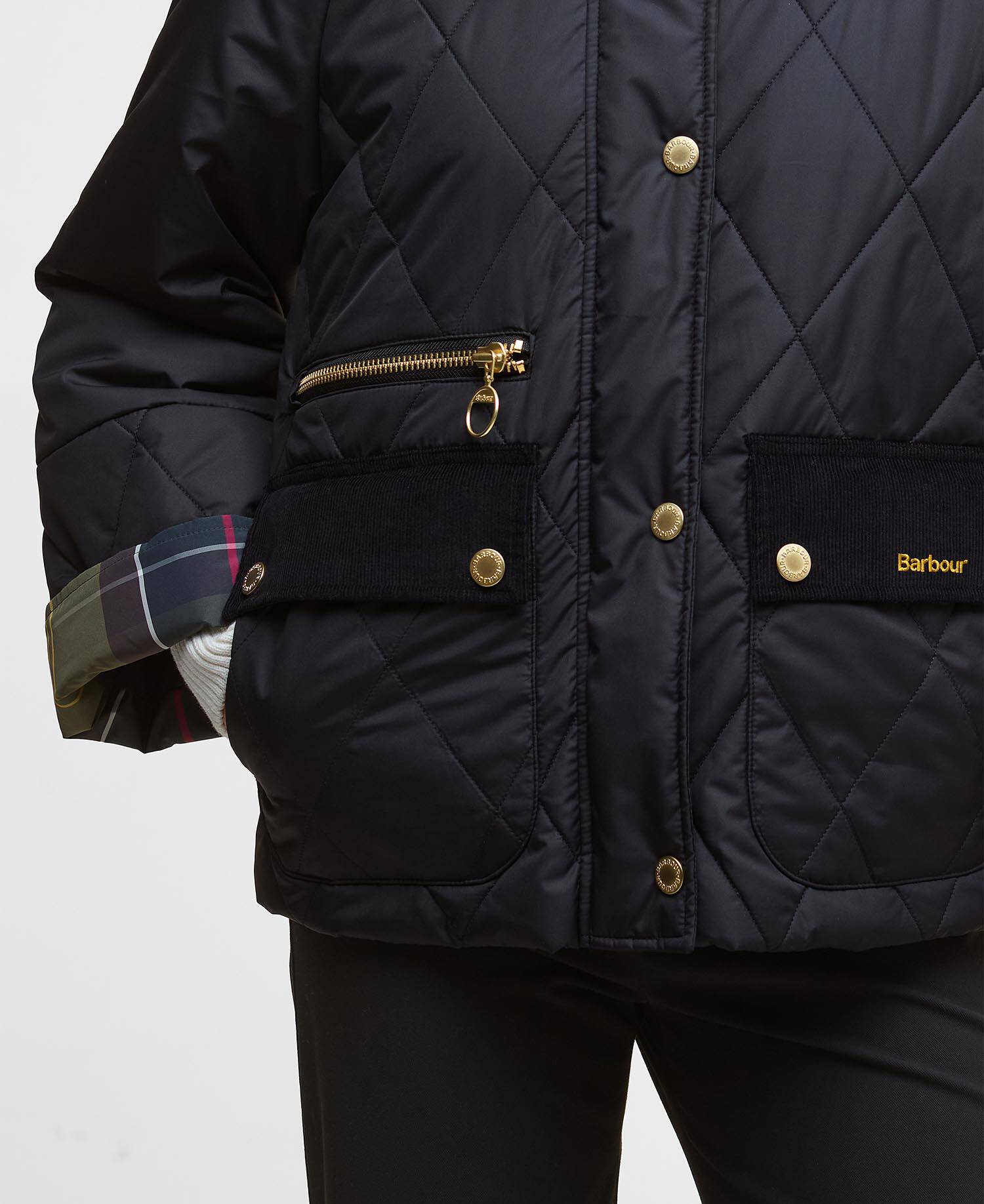 Questa stagione, Barbour punta i riflettori sulla sua caratteristica trapuntatura a rombi: vedi qui sulla giacca trapuntata Barbour Martha.