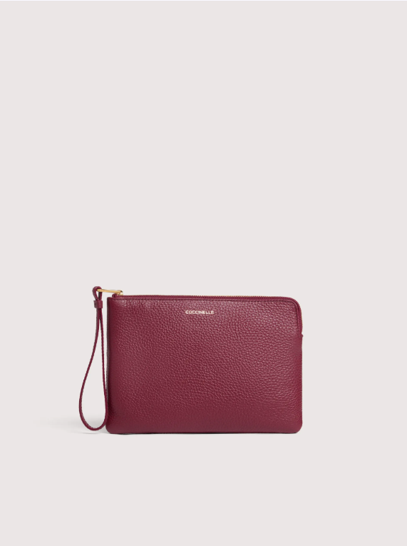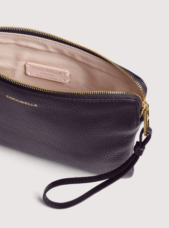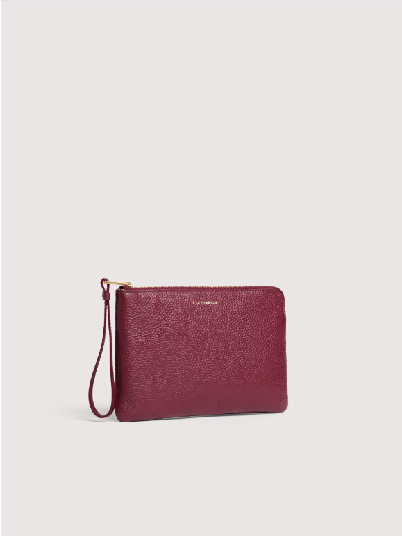 La busta della linea Coccinelle Alias può essere utile per organizzare al meglio il contenuto della propria borsa, diventando così l'accessorio perfetto da portare sempre con sé. Questo modello è stato realizzato in pelle lavorata tramite macchinari specifici e poi bottalata con lo socpo di mantenere la morbidezza. È una pelle resistente, facile da pulire e ideale per un uso quotidiano.