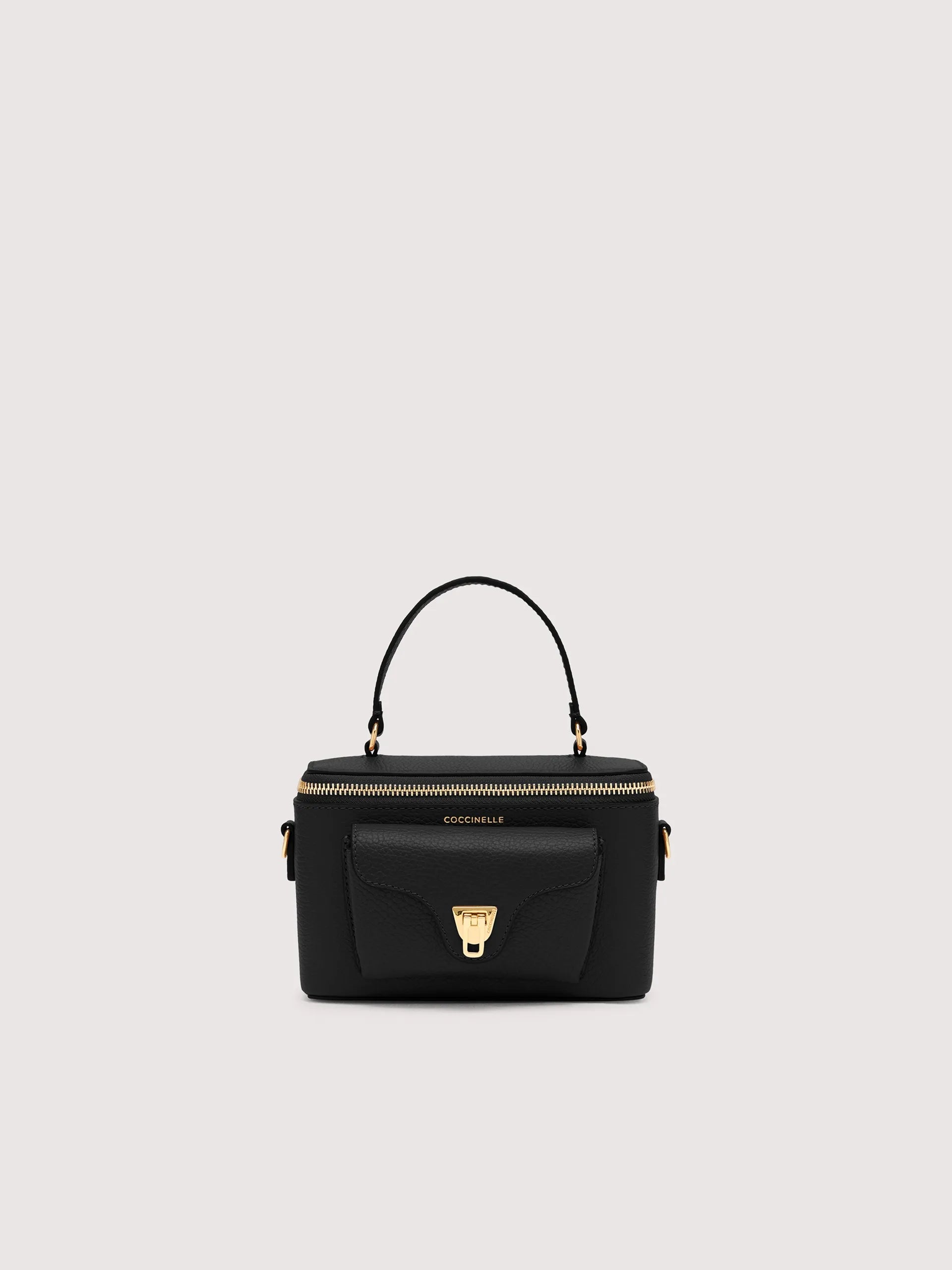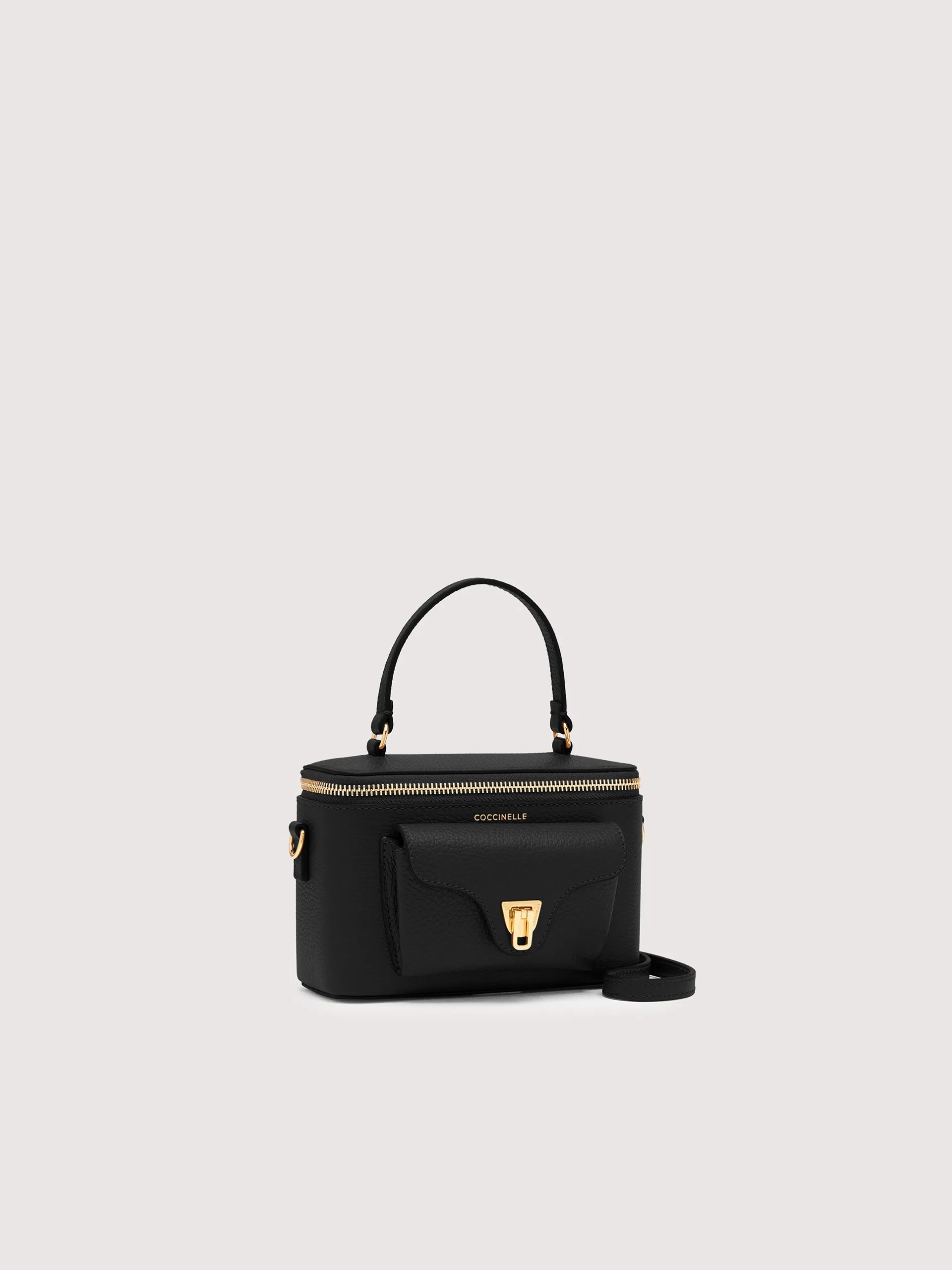 Coccinelle Beat è una tra le icone del brand: la distintiva chiusura a battente con il plettro è il simbolo d’identità Coccinelle. Il mini vanity case con tracolla in pelle è un mix perfetto tra struttura e morbidezza, tra praticità e design contemporaneo. Questo modello è realizzato in pelle lavorata tramite specifici macchinari e poi bottalata al fine di mantenerne la morbidezza. È una pelle molto resistente che si presta a una facile pulizia, ideale per un uso quotidiano.