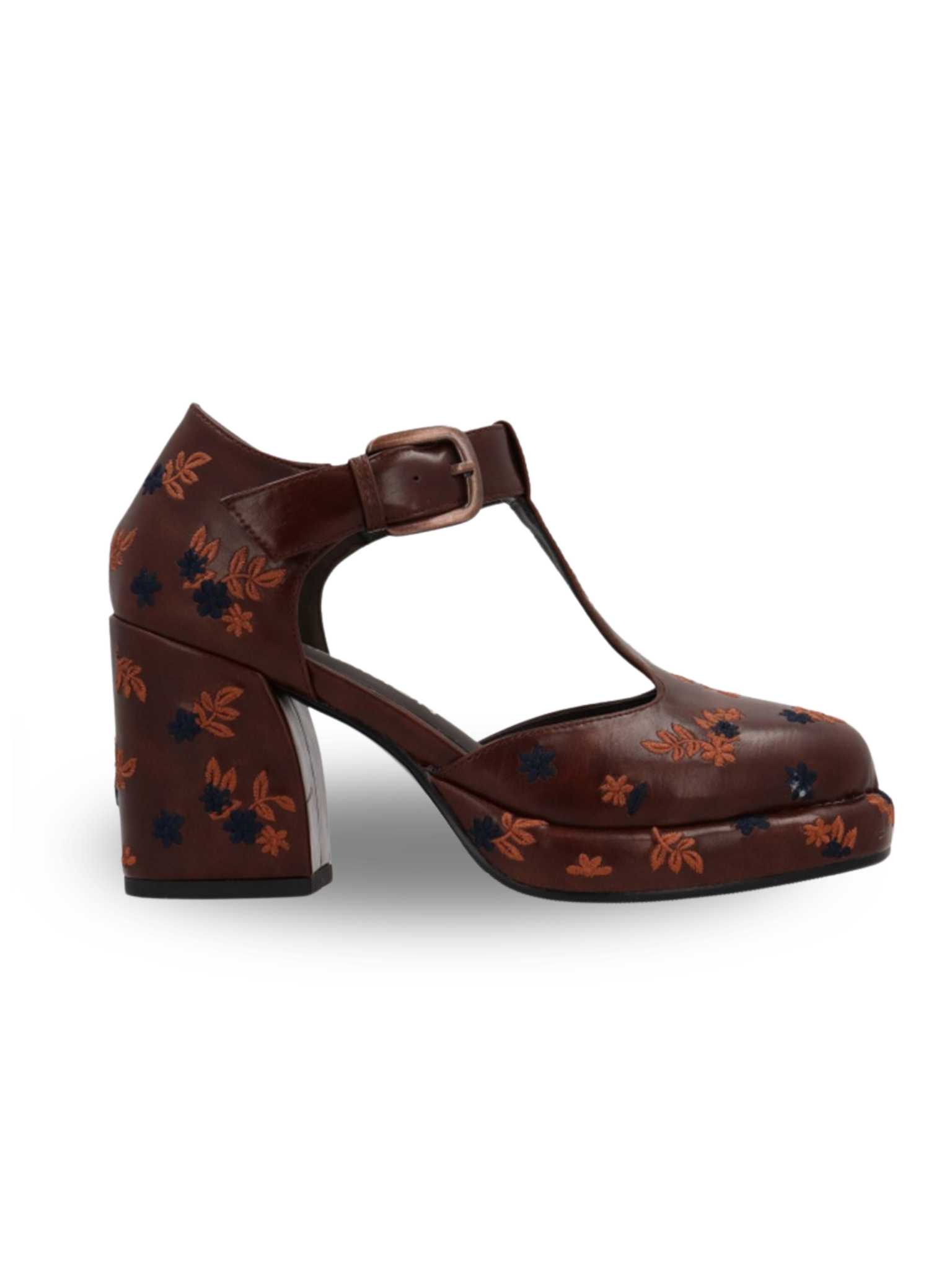 Realizzate in pelle sintetica con finitura marrone e arricchite da ricami floreali nei toni caldi del blu, queste Mary Jane aggiungono un tocco artigianale e originale ai tuoi outfit. Il cinturino a T con chiusura a fibbia regolabile garantisce supporto e calzata confortevole, mentre il tacco largo e il plateau anteriore assicurano stabilità e comfort ad ogni passo. Ideali da abbinare sia a look eleganti che casual chic, le Noa Harmon Mary Jane sono perfette per chi desidera distinguersi con stile in ogni occasione.