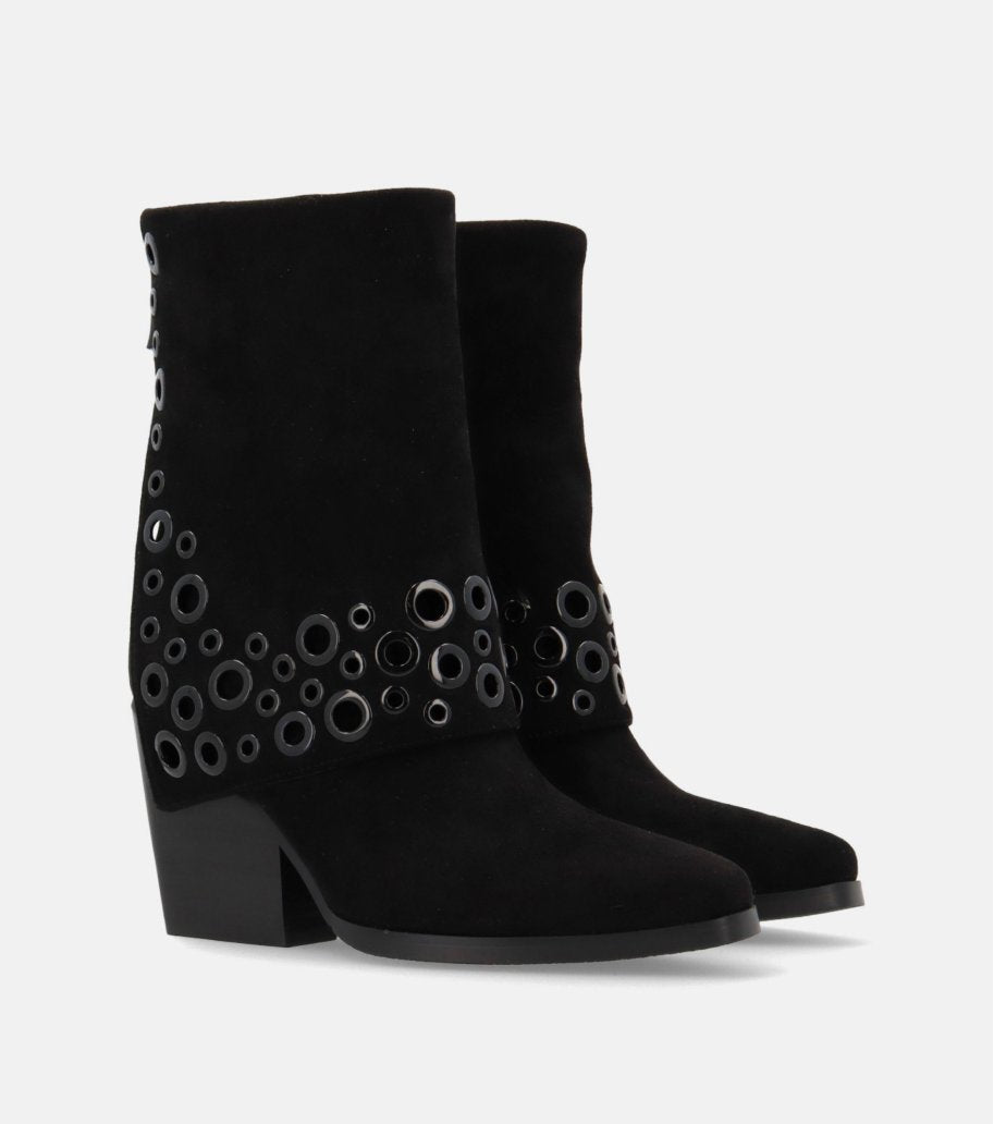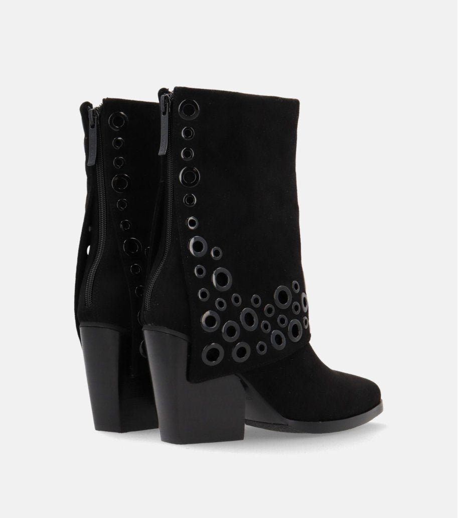 - Dettagli: maxi occhielli decorativi, chiusura posteriore con zip, tacco largo 7 cm, suola antiscivolo