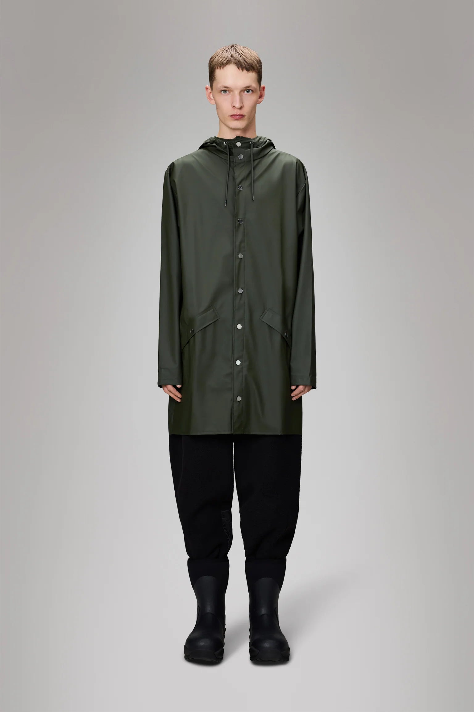 La Long Jacket è una versione più lunga della Jacket, la classica giacca Rains. Questa giacca da pioggia unisex sempre attuale racchiude molte funzionalità in un modello minimalista. Infatti, le caratteristiche includono doppie tasche oblique saldate con patta, polsini regolabili e un orlo a coda di pesce. Inoltre, il look è rifinito con bottoni automatici a scatto, occhielli sotto le braccia, un carré posteriore con prese d'aria nascoste. Quindi, questa giacca impermeabile è realizzata in tessuto PU firmato Rains e presenta cuciture saldate a ultrasuoni. Inoltre, la finitura è leggera, con un drappeggio elegante dalla morbida sensazione.